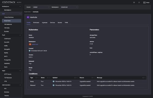 - Запланировано добавление вкладки с VNC-консолью для виртуальных машин. Для некоторых типов ресурсов будут добавлены специальные вкладки/поля (например, для KubeVirt-ВМ).